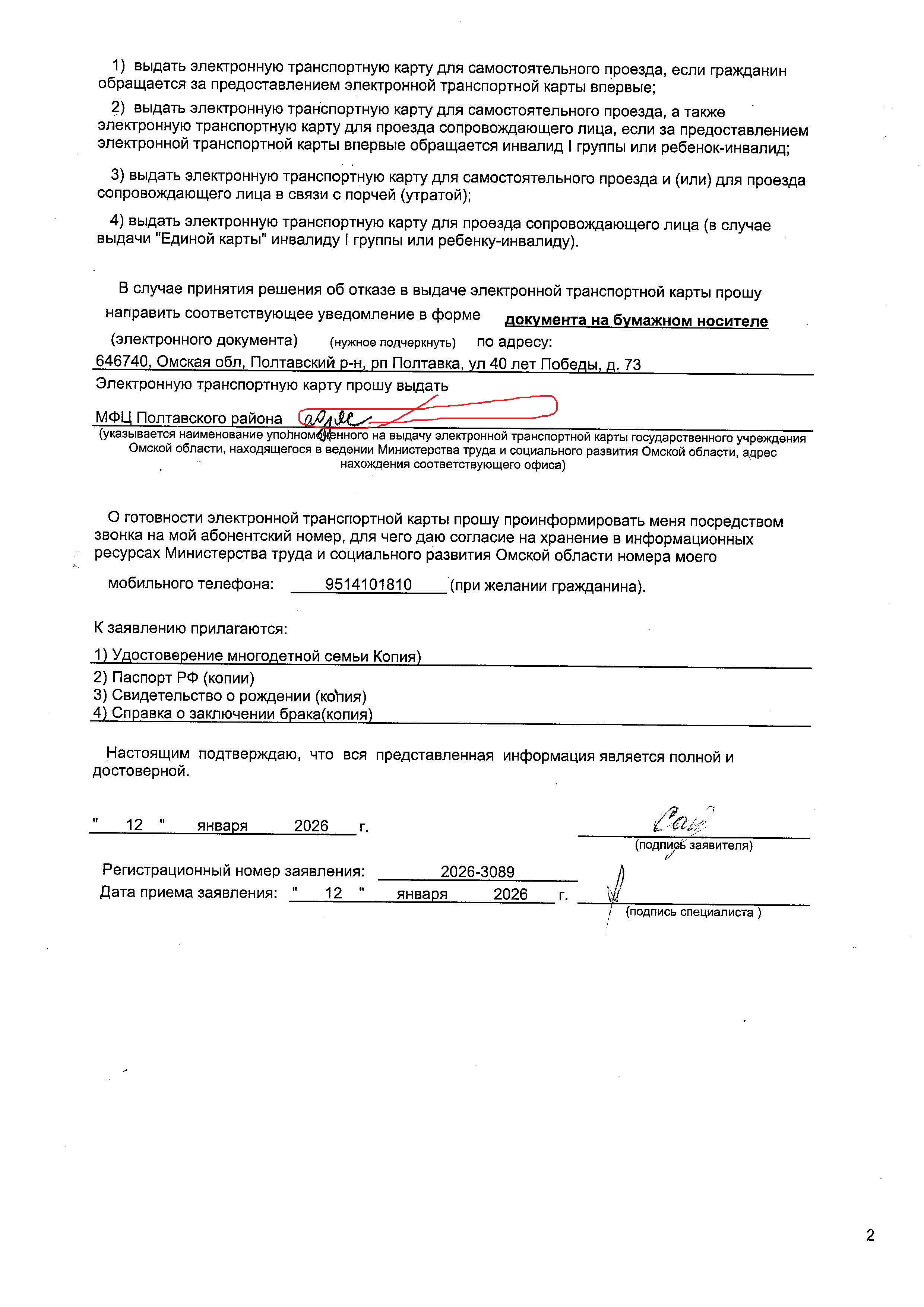 Шаблон заявления выдача транспортных карт адрес органа "1-я Восточная ул., д. 2, р.п. Полтавка, Омская область, 646740