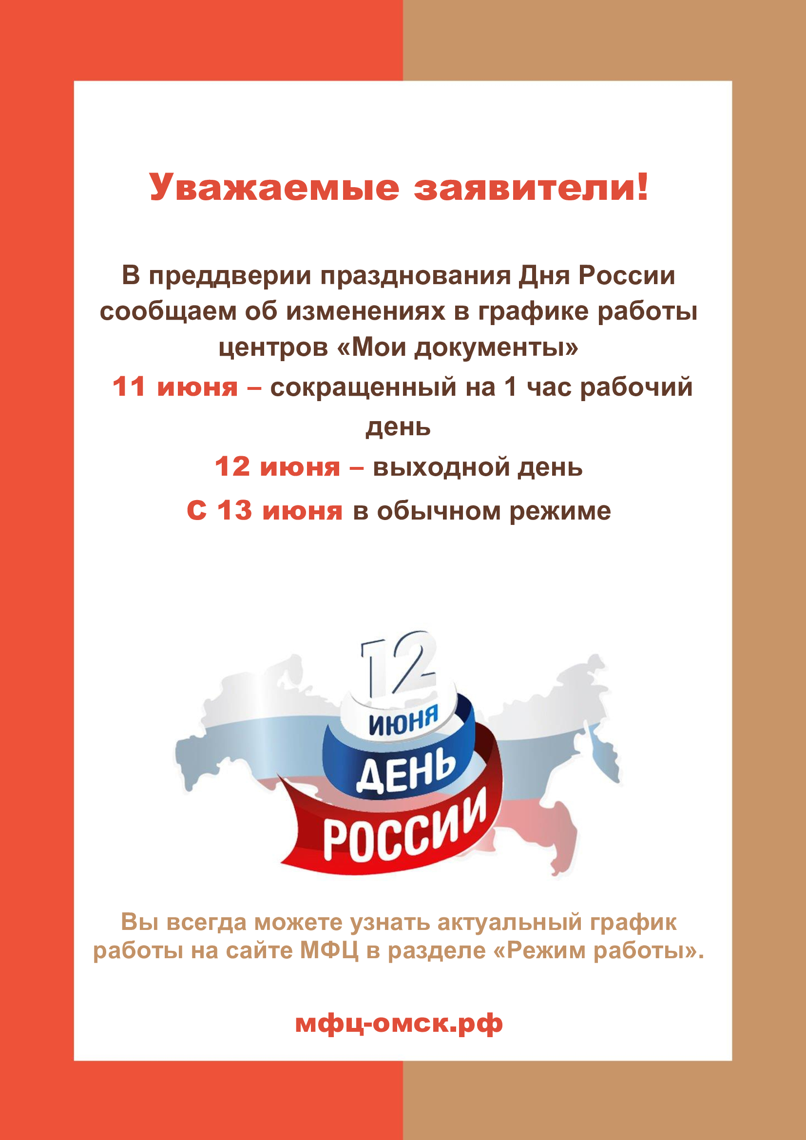 Изменение режима работы центра «Мои документы»