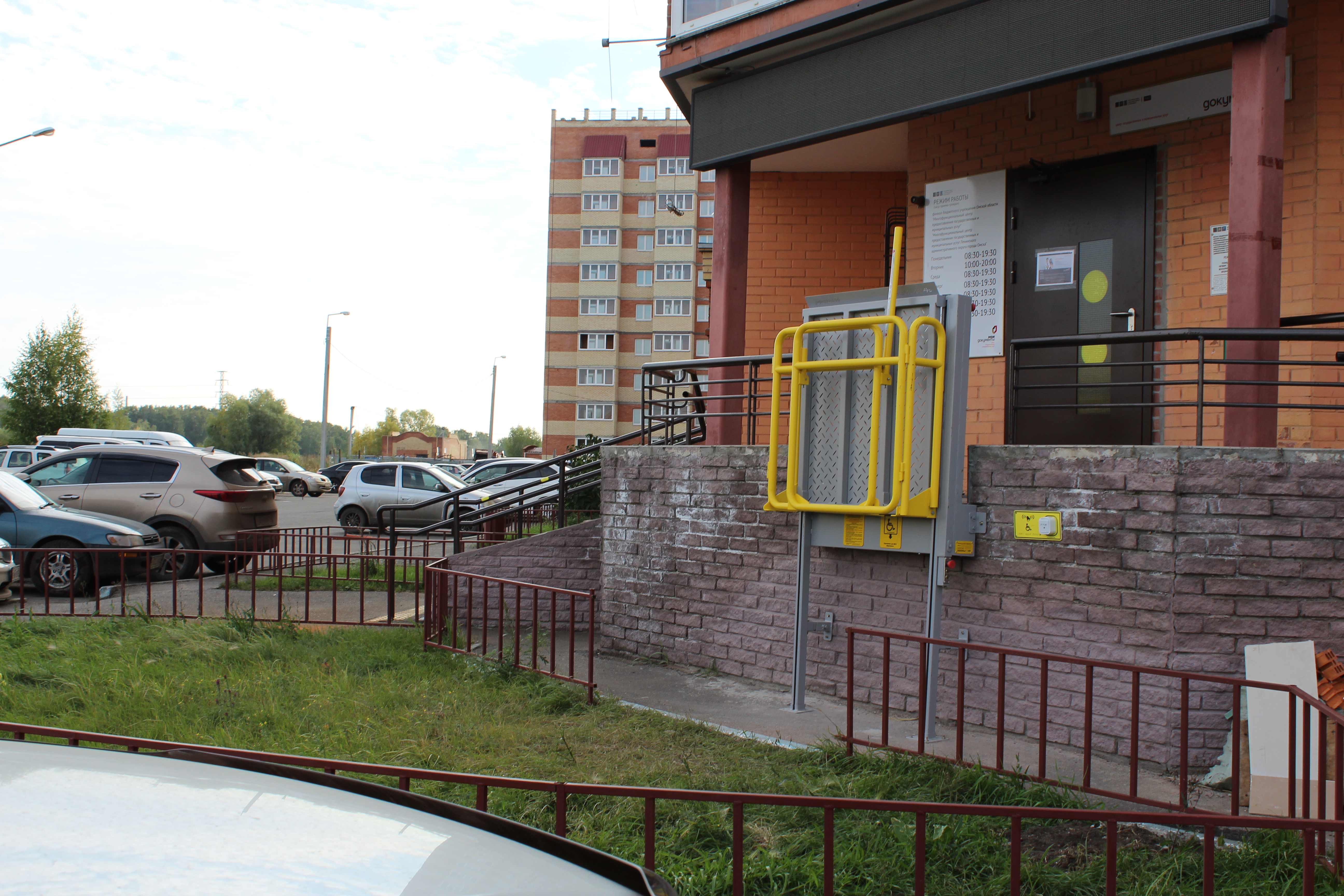 В текущем году в рамках программы «Доступная среда» МФЦ были выделены средства для организации приема граждан с ограниченными возможностями на территории, расположенной по адресу: ул. И. Мишина, д.8. Так, перед лестничным маршем были уложены предупреждающие бетонные тактильные плиты, а на крыльце смонтирован вертикальный уличный подъемник, оснащенный беспроводной кнопкой вызова.